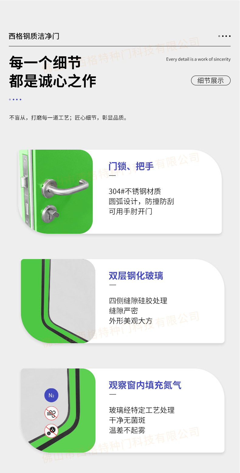 產品簡介:廣東西格,大型凈化門生產廠家,專用生產各類型凈化門,款式,視窗,材質厚度,均可定制。