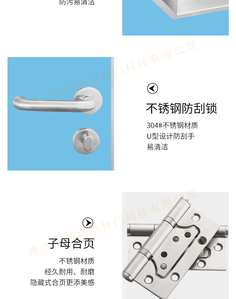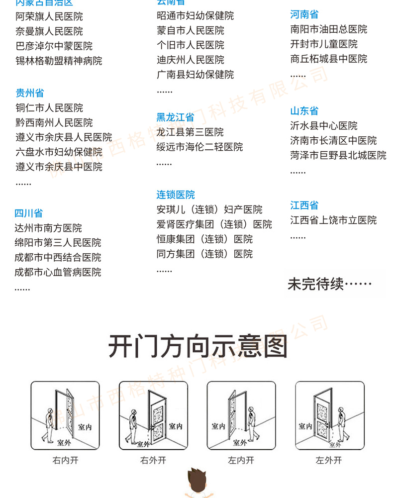 產品簡介:chnsige西格特種門,專業生產醫院門,醫院診室門,醫院辦公室門,醫院衛生間門,木質醫院門,鋼質醫院門,多鐘款式、顏色,尺寸可定制。
