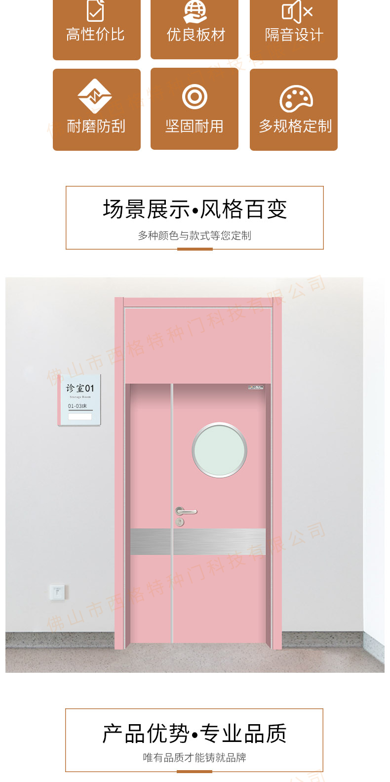 產品簡介:chnsige西格特種門,專業生產病房門,醫院病房門,醫院病房木門,病房木門,木質病房門,鋼質病房門,多鐘款式、顏色,尺寸可定制。
